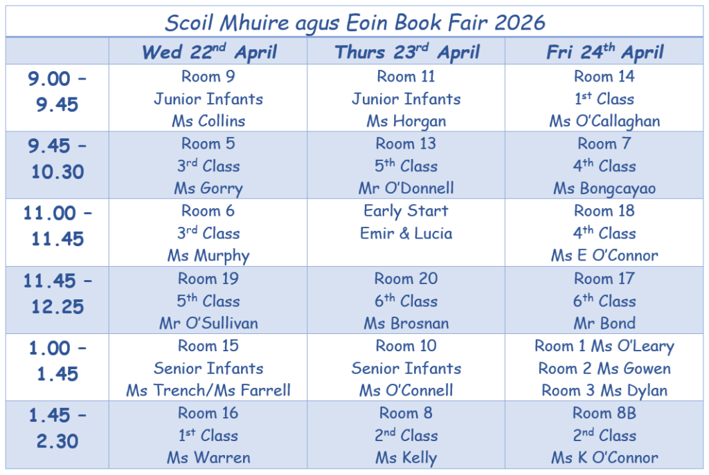Parents/Guardians/Grandparents are invited to attend with the children to help them choose a book to buy. Alternatively you may wish to allow your child to choose and buy books independently.